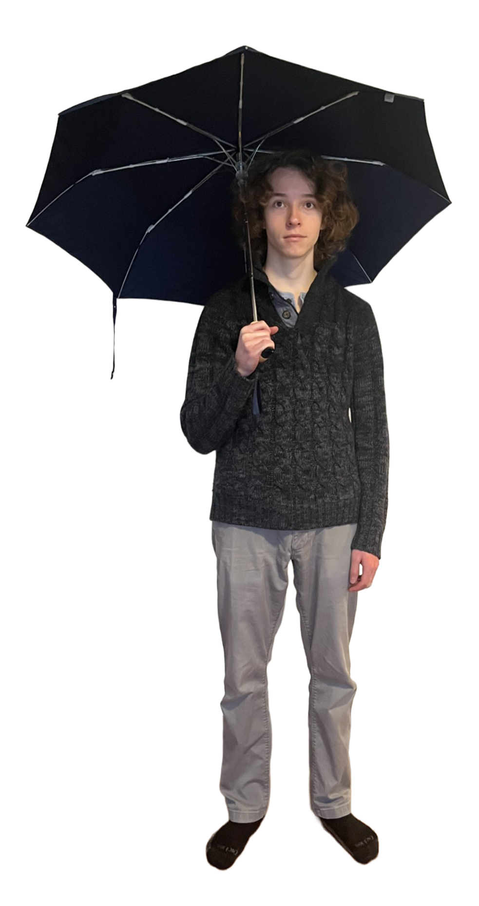 I evaluated how a 177 cm (5’10”) male user uses the Duckhead umbrella. His height from the waist up is 65 cm, 2.13 cm above the mean for the male population. His elbow to center-of-grip length is 38 cm, also on the higher end. In order to hold the umbrella over his head, his arm is bent at a 37° angle. This is a reasonable angle, but it involves more strain than a 90° angle bend and could cause discomfort if he is carrying the umbrella for a long period of time.