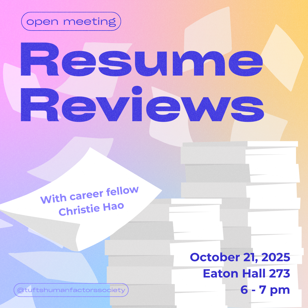 Examples of my original graphic design work for the Tufts Human Factors and Ergonomics Society.